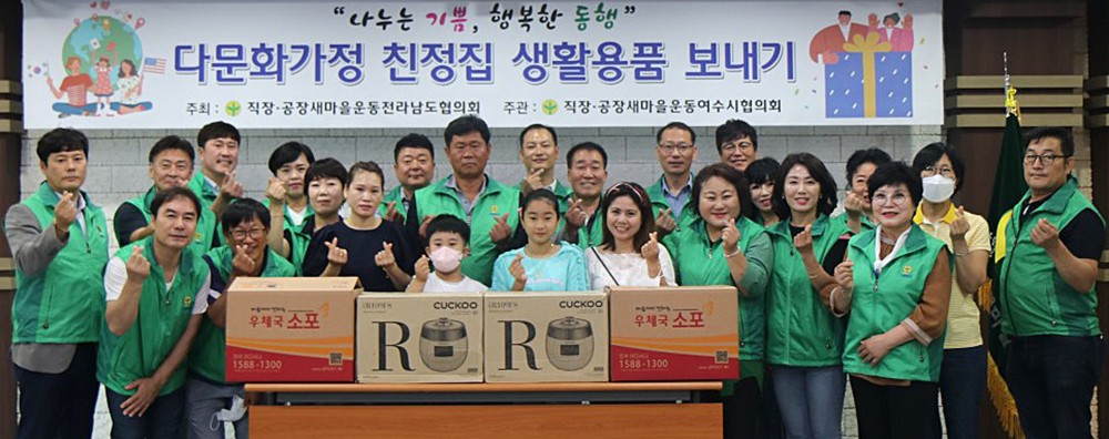 Á÷À塤°øÀå»õ¸¶À»¿îµ¿¿©¼ö½ÃÇùÀÇȸ´Â ¡°ÃÖ±Ù °ü³»¿¡ °ÅÁÖÇÏ´Â »ýȰ ȯ°æÀÌ ¾î·Á¿î ´Ù¹®È°¡Á¤ 2°¡±¸¸¦ ¼±Á¤, ¿©¼ö½Ã »õ¸¶À»È¸°ü¿¡¼ ¡®´Ù¹®È°¡Á¤ Ä£Á¤Áý »ýȰ¿ëǰ º¸³»±â¡¯ Çà»ç¸¦ °¡Á³´Ù¡±°í 13ÀÏ ¹àÇû´Ù.