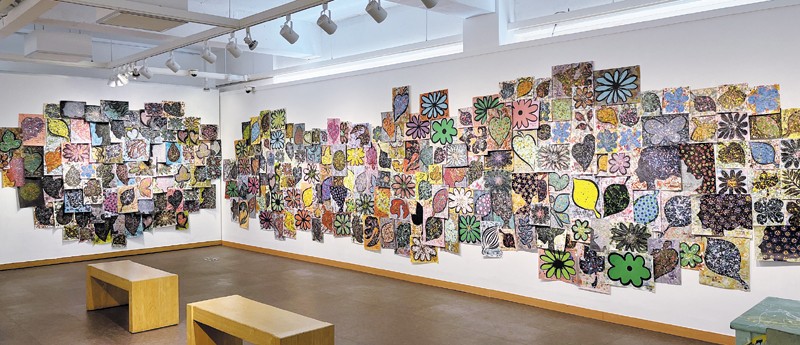 Àü½ÃÀå ÇÑÂÊ º®¸é¿¡´Â ¼ö¸¹Àº µµÈÁö ±×¸²µéÀÌ ºÙ¾îÀÖ´Ù. ¹°°¨À» Èð»Ñ¸®¸ç ¿Ï¼ºÇÑ ²É, ³ª¹«, ³ªºñ, »ç¶÷ÀÇ ¾ó±¼ µî ´Ù¾çÇÑ Çü»óµéÀÌ ÇÑ ´«¿¡ µé¾î¿Â´Ù.