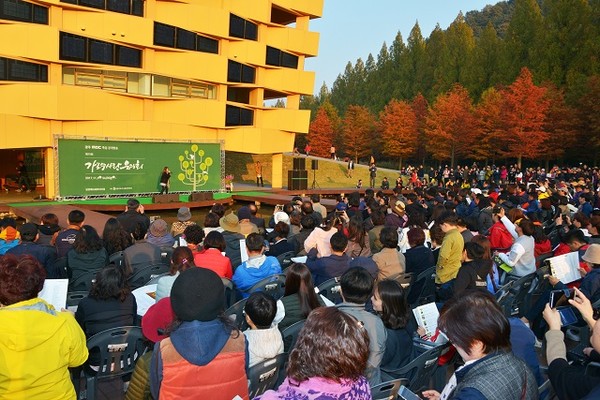 °¡·Î¼öÀ½¾Çȸ º»°ø¿¬ ¡®¸ÞŸ±æ¿¡¼ °¡À»À» ³ë·¡ÇÏ´Ù¡¯¿¡´Â ¡®¹®¹Û¿¡ ÀÖ´Â ±×´ë¡¯·Î À¯¸íÇÑ °¡¼ö ¹Ú°¼º, ¡®°¡À»»ç¶û¡¯ÀÇ ½Å°èÇà, ¡®°¡À»Àº Âü ¿¹»Ú´Ù¡¯ÀÇ ¹Ú°¼ö µîÀÌ Ãâ¿¬ÇØ ¾Æ¸§´Ù¿î ´ÜdzÀ¸·Î ¹°µç ¸ÞŸ°¡·Î¼ö±æÀÇ °¡À» Á¤Ã븦 ³ë·¡·Î ¼±»çÇÑ´Ù.
