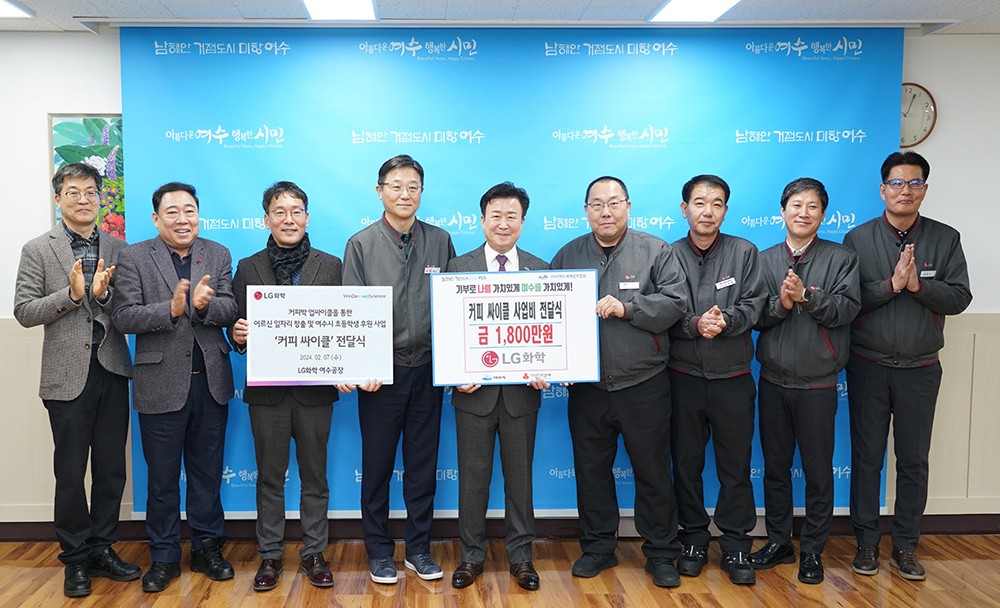 LGÈÇÐ ¿©¼ö°øÀåÀº ¡°ÃÖ±Ù ¿©¼ö½Ã¿Í ¿©¼ö½Ã ³ëÀκ¹Áö°ü°ú ÇÔ²² Ä¿ÇÇ¹Ú ¾÷½ÎÀÌŬÀ» ÅëÇÑ ¾î¸£½Å ÀÏÀÚ¸® âÃâ ¹× ¿©¼ö½Ã ÃʵîÇлý ÈÄ¿ø »ç¾÷ ¡®Ä¿ÇǽÎÀÌŬ¡¯ ±â±Ý 1õ800¸¸¿ø¿¡ ´ëÇÑ Àü´Þ½ÄÀ» °¡Á³´Ù¡±°í 13ÀÏ ¹àÇû´Ù.<»çÁø>