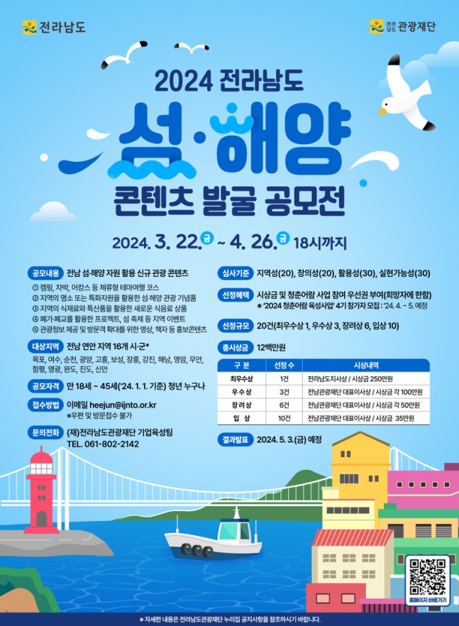 Àü³² ¼¶¡¤ÇØ¾ç °ü±¤ ÄÜÅÙÃ÷ ¹ß±¼ °ø¸ðÀüÀº ´ëÇѹα¹ ±¹¹Î Áß 18¼¼¿¡¼ 45¼¼±îÁö ´©±¸³ª Âü¿©ÇÒ ¼ö ÀÖ´Ù. ¿À´Â 4¿ù26ÀϱîÁö À̸ÞÀÏÀ» ÅëÇØ °ø¸ð ½Åû¼¿Í °ü·Ã ¼·ù¸¦ Á¦ÃâÇÏ¸é µÈ´Ù. À̹ø °ø¸ðÀüÀº Àü³² ¿¬¾È Áö¿ª 16°³ ½Ã¡¤±ºÀ» ´ë»óÀ¸·Î ÀÌ·ïÁø´Ù. Ä·ÇÎ, Â÷¹Ú, ¾îIJ½º µî ü·ùÇü Å׸¶¿©Çà ÄÚ½ººÎÅÍ Áö¿ª ¸í¼Ò³ª ƯÈÀÚ¿øÀ» Ȱ¿ëÇÑ ¼¶¡¤ÇØ¾ç °ü±¤±â³äǰ±îÁö ÃÑ 5°³ ºÐ¾ß »õ·Î¿î °ü±¤ ¾ÆÀ̵ð¾î¸¦ ¸ðÁýÇÑ´Ù.