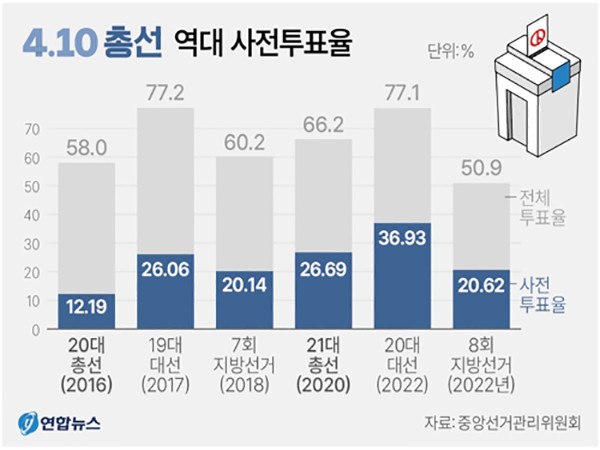 4ÀÏ Áß¾Ó¼±°Å°ü¸®À§¿øÈ¸¿¡ µû¸£¸é Á¦22´ë ÃѼ± À¯±ÇÀÚ´Â º°µµ ½Å°í ¾øÀÌ Àü±¹ »çÀüÅõÇ¥¼Ò ¾îµð¿¡¼³ª ÅõÇ¥ÇÒ ¼ö ÀÖ´Ù. ÅõÇ¥ ½Ã°£Àº ¿ÀÀü 6½ÃºÎÅÍ ¿ÀÈÄ 6½Ã±îÁö´Ù. »çÀüÅõÇ¥ÇÏ·¯ °¥ ¶§´Â º»ÀÎÀÇ Áֹεî·ÏÁõ, ¿©±Ç, ¿îÀü¸éÇãÁõ µî °ü°ø¼ ¶Ç´Â °ø°ø±â°üÀÌ ¹ßÇàÇÏ°í »ý³â¿ùÀϰú »çÁøÀÌ Ã·ºÎµÅ º»ÀÎÀÓÀ» È®ÀÎÇÒ ¼ö ÀÖ´Â ½ÅºÐÁõÀ» ¹Ýµå½Ã ÁöÂüÇØ¾ß ÇÑ´Ù. ¸ð¹ÙÀÏ ½ÅºÐÁõÀÇ °æ¿ì ¾ÛÀ» ½ÇÇàÇØ »çÁø¡¤¼º¸í¡¤»ý³â¿ùÀÏÀ» ÇöÀå¿¡¼ È®ÀÎ¹Þ¾Æ¾ß ÇÑ´Ù. ȸé ĸó µîÀ» ÅëÇØ ÀúÀåÇÑ À̹ÌÁö ÆÄÀÏÀº »ç¿ëÇÒ ¼ö ¾ø´Ù.