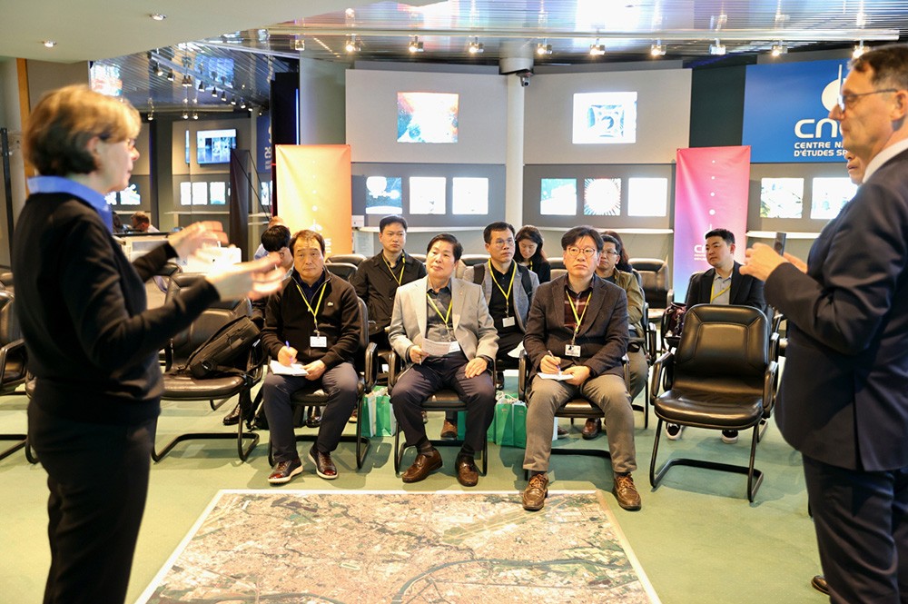 À̳¯ CNESÀÇ Jean-Claude Souyris ºÎ±¹Àå°ú Anne Thieser ±¹Á¦±³·ù ´ã´ç°üÀÌ ¸é´ã¿¡ Âü¼®ÇØ, ÇÁ¶û½º ¿ìÁÖ»ê¾÷ ¼ºÀå¿¡ ÃæÁÖÀûÀÎ ¿ªÇÒÀ» ÇÏ´Â CNES¿¡ ´ëÇÑ ¼³¸íÀ» ½ÃÀÛÀ¸·Î ¿ìÁÖ»ê¾÷ÀÇ Àü¸Á¿¡ ´ëÇÑ ÀǰßÀ» ±³·ùÇÏ¸ç °íÈﱺÀÌ ¿ìÁÖ»ê¾÷ »ýŰè Á¶¼ºÀ» À§ÇØ ³ª¾Æ°¥ ¹æÇâÀ» Á¤¸³Çß´Ù.
