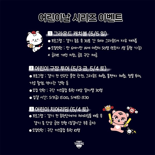 ÇÁ·Î¾ß±¸ KIA ŸÀ̰ÅÁî°¡ ´ÙÀ½´Þ 3-5ÀÏ ÇÑÈ À̱۽º¿ÍÀÇ È¨°æ±â¸¦ ¡®°¼¸°ÀÌ ³¯ ½Ã¸®Á·Î Ä¡¸¥´Ù. KIA´Â ¾î¸°ÀÌ ÆÒµéÀ» ½Ã±¸ÀÚ·Î ÃÊûÇϰí, ´Ù¾çÇÑ À̺¥Æ®¿Í ¼±¹°À» ÁõÁ¤ÇÏ¸é¼ ²Þ³ª¹«µé¿¡°Ô Èñ¸ÁÀ» ¼±»çÇÒ °èȹÀÌ´Ù.