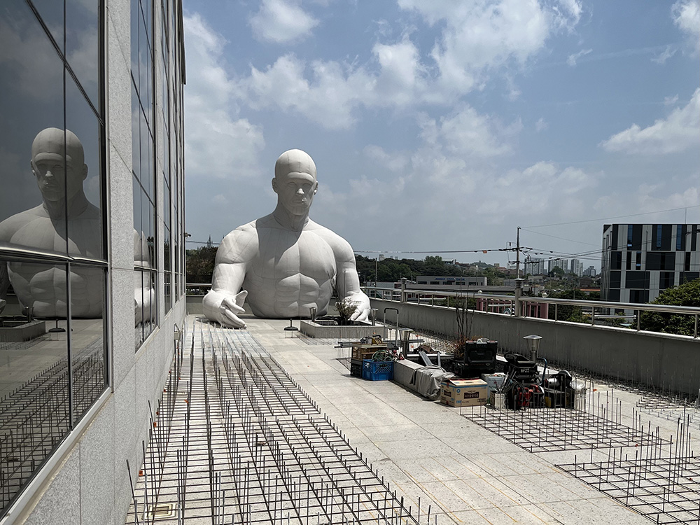 ¾ß¿Ü¿¡ ¼³Ä¡µÈ ´ëÇü ¿¡¾îÀÛǰÀº À̼º¿õ ÀÛ°¡ÀÇ ¡®°ø°¨¡¯ÀÌ´Ù. ¸ðµç À̸¦ ǰ°íÀÚ ÇÏ´Â È÷¾î·Î¿Í °°Àº Çü»óÀ¸·Î Ä¡À¯¿Í ¾ÈÁ¤À» ÀüÇÏ·Á´Â Àǵµ¸¦ ´ã¾Æ³Â´Ù. ±× ¾Õ ±ê¹ß´ë¿¡´Â ÆòÈÀÇ ¸Þ½ÃÁö¸¦ ´ãÀº ±ê¹ß 2õ°³¸¦ ²È´Â üÇè °ø°£ÀÌ Á¶¼ºµÈ´Ù.