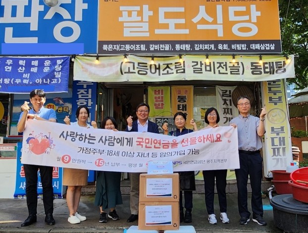 Áö¿ªº»ºÎ°¡ ¼ÒÀçÇÑ ±¤»ê±¸ Àα٠¡®ÆÈµµ½Ä´ç¡¯Àº Áö¿ªº»ºÎ Á÷¿ø 150¿©¸íÀÌ ÀÚÁÖ ÀÌ¿ëÇÏ´Â ½Ä´çÀ¸·Î, »ýºÐÇØ ¹°Æ¼½´¿¡ ¡®»ç¶ûÇÏ´Â »ç¶÷¿¡°Ô ±¹¹Î¿¬±ÝÀ» ¼±¹°Çϼ¼¿ä¡¯ Ä·ÆäÀÎ ¹®±¸µµ ±âÀÔÇØ ½Ä´çÀ» ÀÌ¿ëÇÏ´Â Àα٠Á÷ÀåÀÎ ¹× Áö¿ª Áֹε鿡°Ô ±¹¹Î¿¬±Ý Á¦µµ ¾È³»µµ ÇÔ²²Çϵµ·Ï ½Ä´ç ´ëÇ¥¿Í ÇùÀÇÇØ ÃßÁøÇÏ°Ô µÆ´Ù.