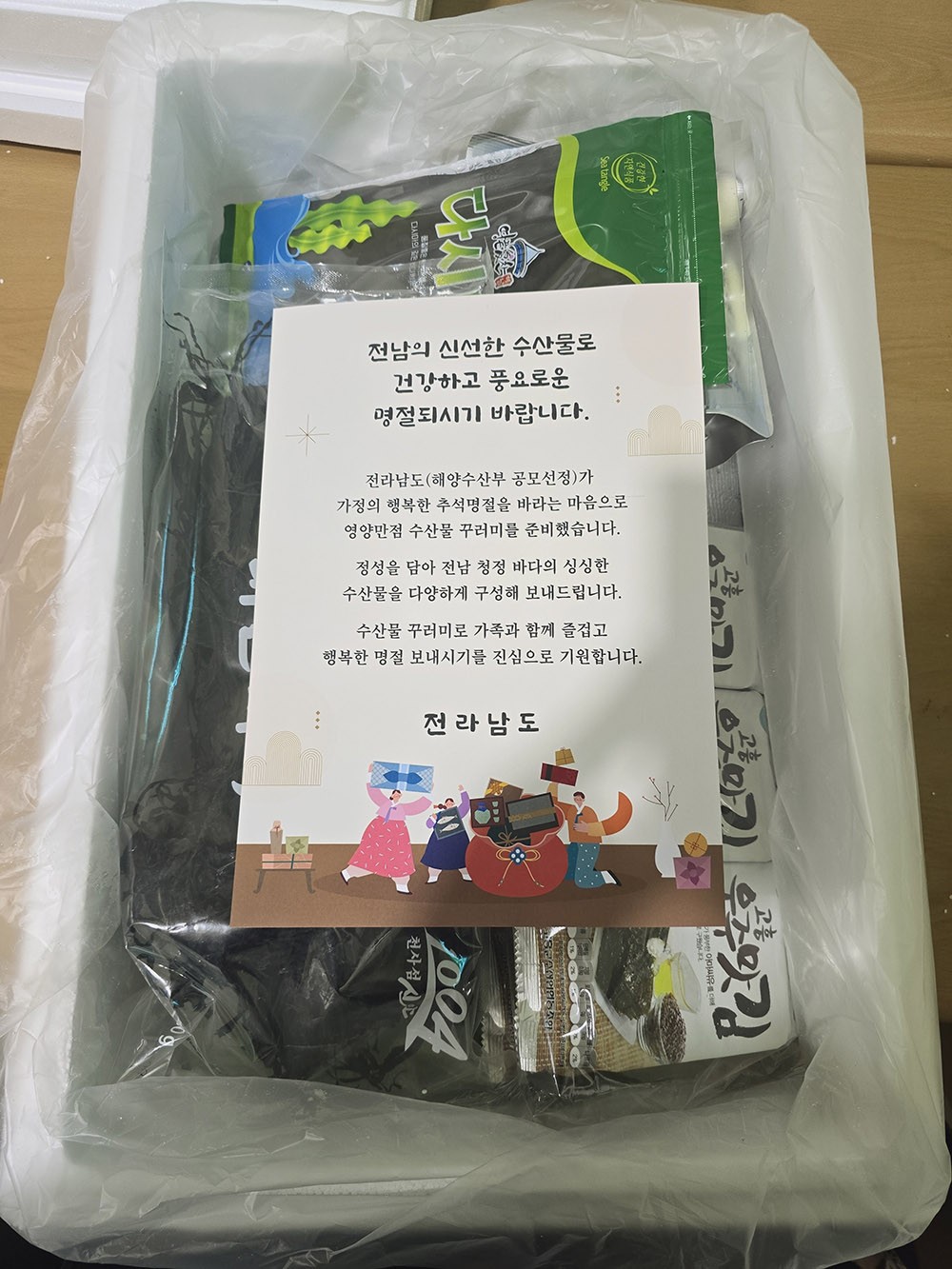 ¼ö»ê¹° ²Ù·¯¹Ì´Â Àü³²¿¡¼ »ý»êµÈ ¼ö»ê¹° Áß ÀÚ¼÷Àüº¹, ¹Ý°ÇÁ¶¿ì·°, ¸¶¸¥¸êÄ¡, ¹Ì¿ª, ´Ù½Ã¸¶ µî 7Á¾À¸·Î 5¸¸¿ø »ó´çÀÌ´Ù. ¾çÁúÀÇ ¿µ¾ç½ÄÀ̸鼵µ Á¶¸®Çϱ⠰£ÆíÇÑ ¼ö»êǰÀ¸·Î ±¸¼ºµÆ´Ù.
