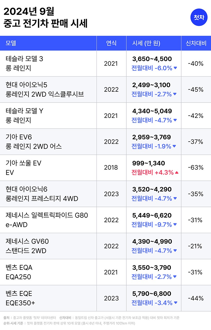 ùÂ÷´Â 8¿ù1ÀϺÎÅÍ 8¿ù31ÀϱîÁö °Å·¡·®ÀÌ ¸¹¾Ò´ø Àü±â¡¤ÇÏÀ̺긮µå Áß°íÂ÷ 20Á¾À» ¼±Á¤Çß´Ù. Ãâ°í 6³â À̳», 10¸¸§° ÀÌÇÏ ÁÖÇà°Å¸®¸¦ º¸À¯ÇÑ ¸Å¹° ±âÁØ 9¿ù ÇöÀç ÆÇ¸Å°¡¸¦ Åä´ë·Î Áß°íÂ÷ ½Ã¼¼¸¦ ºÐ¼®Çß´Ù. Àü±âÂ÷ÀÇ ½ÅÂ÷ ´ëºñ µ¥ÀÌÅÍ´Â ¼¿ï½Ã ±âÁØ º¸Á¶±ÝÀ» ¹Ý¿µÇÑ °¡°Ý°ú Áß°íÂ÷ °¡°ÝÀ» ºñ±³ÇÑ ¼öÄ¡´Ù.