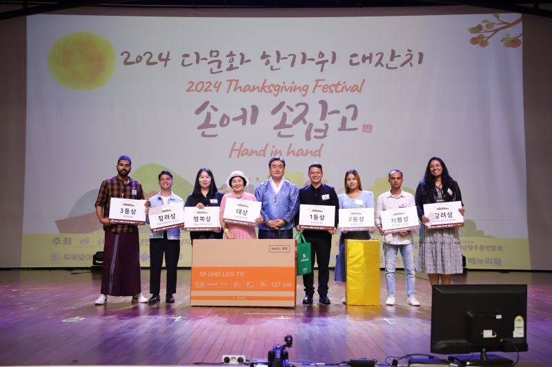 ÃàÁ¦´Â 1ºÎ ¿Ü±¹Àγ뷡ÀÚ¶û°ú 2ºÎ ÇѰ¡À§´ëÀÜÄ¡ ¼øÀ¸·Î ÁøÇàµÆ´Ù. 1ºÎ Çà»ç¿¡¼´Â °¡¼ö äȣÀÇ ´ë±Ý¿¬ÁÖ¿Í Çѱ¹ÀüÅë°ø¿¬ÀÎ ¡®ÇÔ»ç½Ã¿À¡¯°¡ ¸Úµé¾îÁö°Ô ÆîÃÄÁ® ÃàÁ¦ÀÇ ½ÃÀÛÀ» ¾Ë·È´Ù. ±è»ó±Õ Àü »çȸº¹Áö°øµ¿¸ð±Ýȸ »ç¹«ÃÑÀå°ú ±è¼ø°ï (»ç)À籤ȣ³²Çâ¿ìÃÑ¿¬ÇÕȸ ȸÀåÀÌ Âü¼®ÇØ Ãà»ç¸¦ ÅëÇØ ´Ù¹®ÈÀεé°úÀÇ ÈÇÕ°ú ±³·ùÀÇ ¸Þ½ÃÁö¸¦ ÀüÇß´Ù. ´õºÒ¾î¹ÎÁÖ´ç Á¤Áø¿í ±¹È¸ÀÇ¿ø(±¤ÁÖ µ¿³²°©)ÀÌ ÃàÀüÀ» ÅëÇØ Ãß¼® ¸íÀý Àλ縦 ³ª´³´Ù.