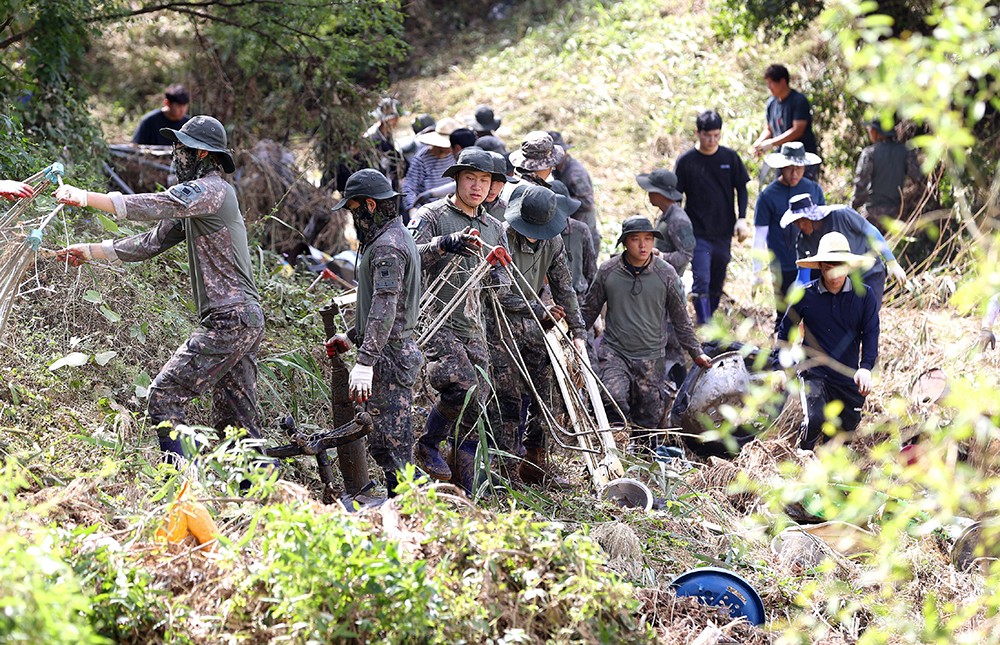 °Áø±ºÀÌ ÁýÁßÈ£¿ì ÇÇÇØ¸¦ ÀÔÀº °ü³» °÷°÷À» º¹±¸Çϱâ À§ÇØ ÇàÁ¤·ÂÀ» ÁýÁßÇϰí ÀÖ´Ù.