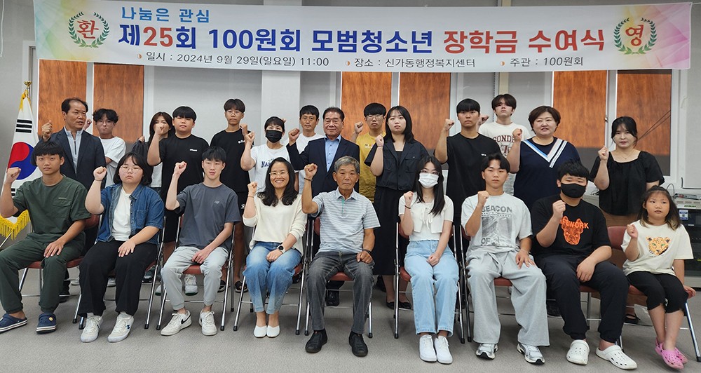 100¿øÈ¸(ȸÀå ±èÈñ¸¸)´Â 29ÀÏ ¿ÀÀü 11½Ã ±¤ÁÖ ±¤»ê±¸ ½Å°¡µ¿ÇàÁ¤º¹Áö¼¾ÅÍ È¸Àǽǿ¡¼ Áö¿ª Áß¡¤°í¡¤´ëÇлý 24¸í¿¡°Ô Èñ¸Á ÀåÇÐ±Ý 570¸¸¿øÀ» Àü´ÞÇß´Ù.