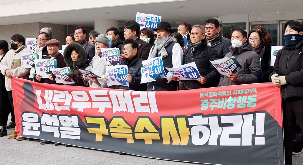 ±¹¹ÎÀÇÈû ±¤ÁÖ ´çÇùÀ§¿øÀå Áß½ÉÀ¸·Î ±¸¼ºµÈ ¡®À±¼®¿ ´ëÅë·É źÇÙ ¹Ý´ë¿Í ÀÚÀ¯¹ÎÁÖÁÖÀÇ ¼öÈ£ ±¤ÁÖ¿¬´ë¡¯´Â À̳¯ ¿ÀÈÄ 2½Ã ±¤ÁÖ½ÃÀÇȸ ºê¸®Çη뿡¼ ±âÀÚȸ°ßÀ» ÁøÇàÇß´Ù.