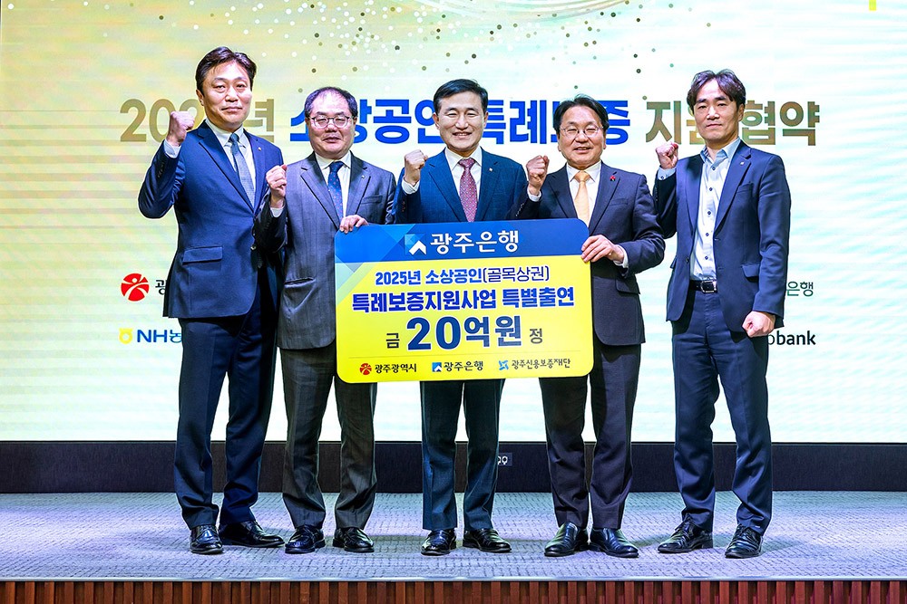 30ÀÏ ±¤ÁÖÀºÇà¿¡ µû¸£¸é ÃÖ±Ù ±¤ÁÖ»ó°øÈ¸ÀǼҿ¡¼ °±âÁ¤ ±¤ÁÖ½ÃÀå, ±è±Í³² ±¤Áֽſ뺸ÁõÀç´Ü ÀÌ»çÀå ¹× °ü°èÀÚ°¡ Âü¼®ÇÑ °¡¿îµ¥ ¡®2025³â ¼Ò»ó°øÀΠƯ·Êº¸Áõ ´ëÃâ Áö¿ø»ç¾÷ Çù¾à¡¯À» ü°áÇß´Ù.