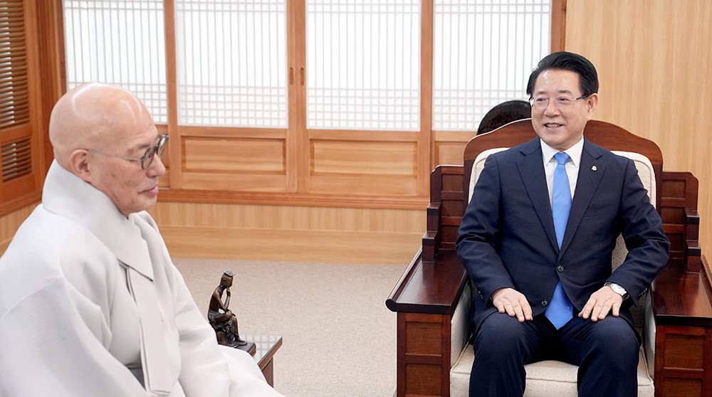 ¾Õ¼ ±è Áö»ç´Â À̳¯ ¿ÀÀü¿£ ´ëÇѺұ³Á¶°èÁ¾ Ãѹ«¿øÀ» ¹æ¹®ÇØ Ãѹ«¿øÀå Áø¿ì½º´ÔÀ» ¿¹¹æÇß´Ù. ±è Áö»ç´Â Á¦ÁÖÇ×°ø ¿©°´±â »ç°í ¾Öµµ ¹× ÇÇÇØÀÚ Áö¿øÈ°µ¿¿¡ °¨»ç Àλ縦 ÀüÇϰí Áø¿ì½º´ÔÀÌ ¿ÃÇØ ȵηΠÁ¦½ÃÇÑ ¡®¼ÒÅ롯¡¤¡®ÈÀ¿¡ °ø°¨À» Ç¥Çß´Ù.