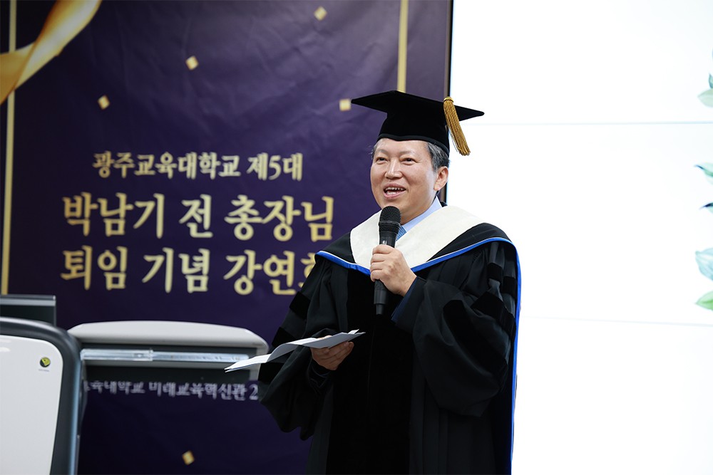 ¹Ú³²±â(»çÁø) ±¤ÁÖ±³´ë ±³¼ö(Á¦5´ë ÃÑÀå)°¡ Á¦ÀÚµé°ú ÇÔ²² ÅðÀÓ½ÄÀ» Çϸç Áö³ 32³â°£ÀÇ ±³À° ¿©Á¤À» ¸¶¹«¸®Çß´Ù.