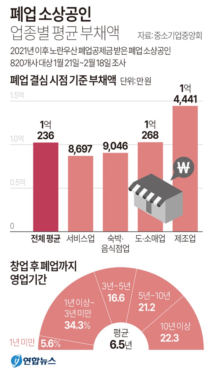 Æó¾÷ °á½É ½ÃÁ¡ ±âÁØÀ¸·Î ºÎä¾× 1¾ï¿ø ÀÌ»óÀÌ 34.5%·Î °¡Àå ¸¹¾Ò°í 5õ¸¸¿ø ÀÌ»ó-7õ500¸¸¿ø ¹Ì¸¸µµ 18.4%¸¦ ±â·ÏÇß´Ù. Æò±Õ ºÎä¾×Àº 1¾ï236¸¸¿ø¿¡ ´ÞÇØ Æó¾÷ ÈÄ °æÁ¦Àû ¾î·Á¿òÀ» °ÞÀ» °¡´É¼ºÀÌ Å« °ÍÀ¸·Î Á¶»çµÆ´Ù.