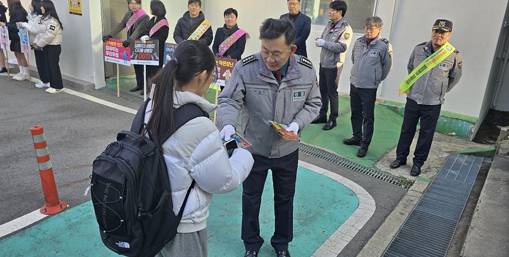 Âü¿©ÀÚµéÀº ¡®Çб³Æø·Â OUT, Ä£±¸»ç¶û IN¡¯ ¹®±¸°¡ ÀûÈù Ç÷¡Ä«µå¸¦ µé°í ÇÖÆÑ, Æ÷½ºÆ®ÀÕÀ» ³ª´²ÁÖ¸ç µî±³ÇÏ´Â ÇлýµéÀ» ¸Â¾Ò´Ù. ¶Ç ½ºÄðÁ¸ ³» ÁÖÁ¤Â÷ Áöµµ¡¤´Ü¼Ó°ú ÇÔ²² Çб³ Á¤¹® ¾Õ Ⱦ´Üº¸µµ¿¡¼ ÇлýµéÀÌ ¾ÈÀüÇÏ°Ô °Ç³Î ¼ö ÀÖµµ·Ï ÁöµµÇß´Ù.