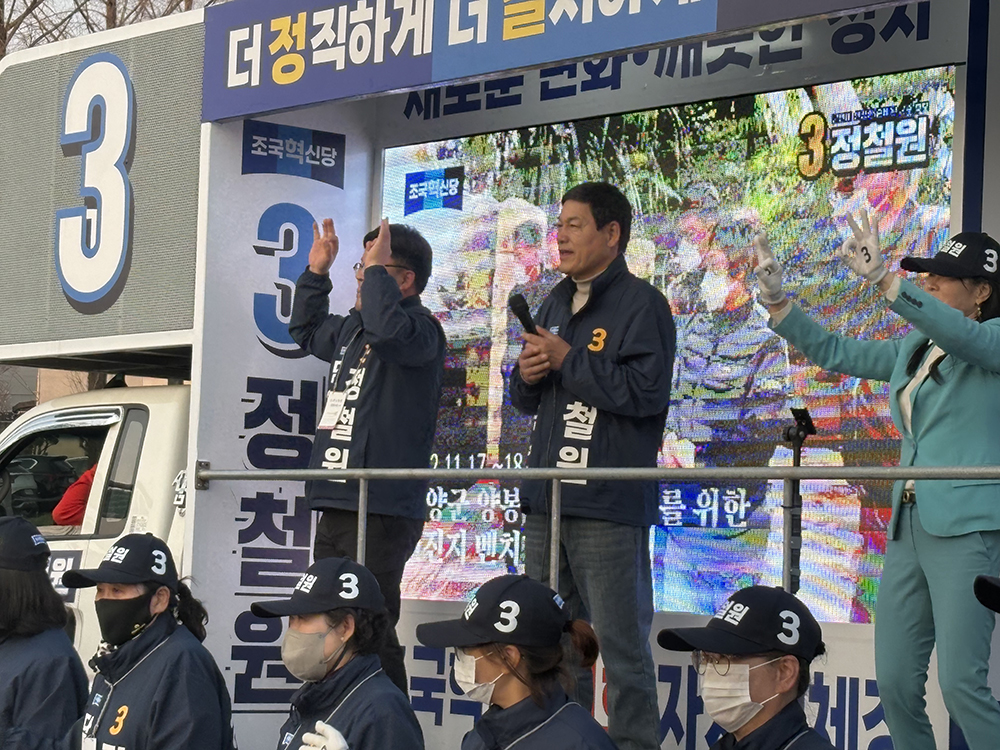 ¹ÎÁÖ´çÀÇ ÅÔ¹çÀÎ ¸¸Å ¼±°Å Ãʹݿ£ ¹ÎÁÖ´ç ÀÌÀçÁ¾(49) Èĺ¸ÀÇ ¿ì¼¼°¡ Á¡ÃÄÁ³À¸³ª ¡®Åä¹ÚÀ̷С¯À» ¾Õ¼¼¿î Á¶±¹Çõ½Å´ç Á¤Ã¶¿ø(62) È帰¡ µÎÅÍ¿î Áö¿ª ³» ÁöÁö ±â¹ÝÀ» Åä´ë·Î Ä¡°í ³ª¿À¸é¼ ¸·ÆÇ±îÁö ½ÂÆÐ¸¦ Á¡Ä¥ ¼ö ¾ø´Â ´ëÁ¢Àü ¾ç»óÀ» º¸À̰í ÀÖ´Ù.