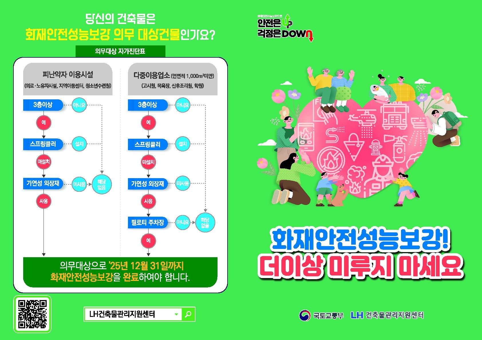 ¡®ÈÀç¾ÈÀü¼º´É º¸°»ç¾÷¡¯Àº ÈÀç¾ÈÀü ±âÁØÀÌ °ÈµÇ±â Àü¿¡ Áö¾îÁø °ÇÃ๰ÀÇ ¾ÈÀüÀ» È®º¸Çϱâ À§ÇØ ºÒ¿¡ Ÿ±â ½¬¿î °ÇÃ๰ ¿ÜÀåÀç ±³Ã¼¿Í ½ºÇÁ¸µÅ¬·¯ ¼³Ä¡ µîÀ» Áö¿øÇÏ´Â »ç¾÷À¸·Î ¿ÃÇØ ¸»±îÁö ½ÃÇàµÈ´Ù.