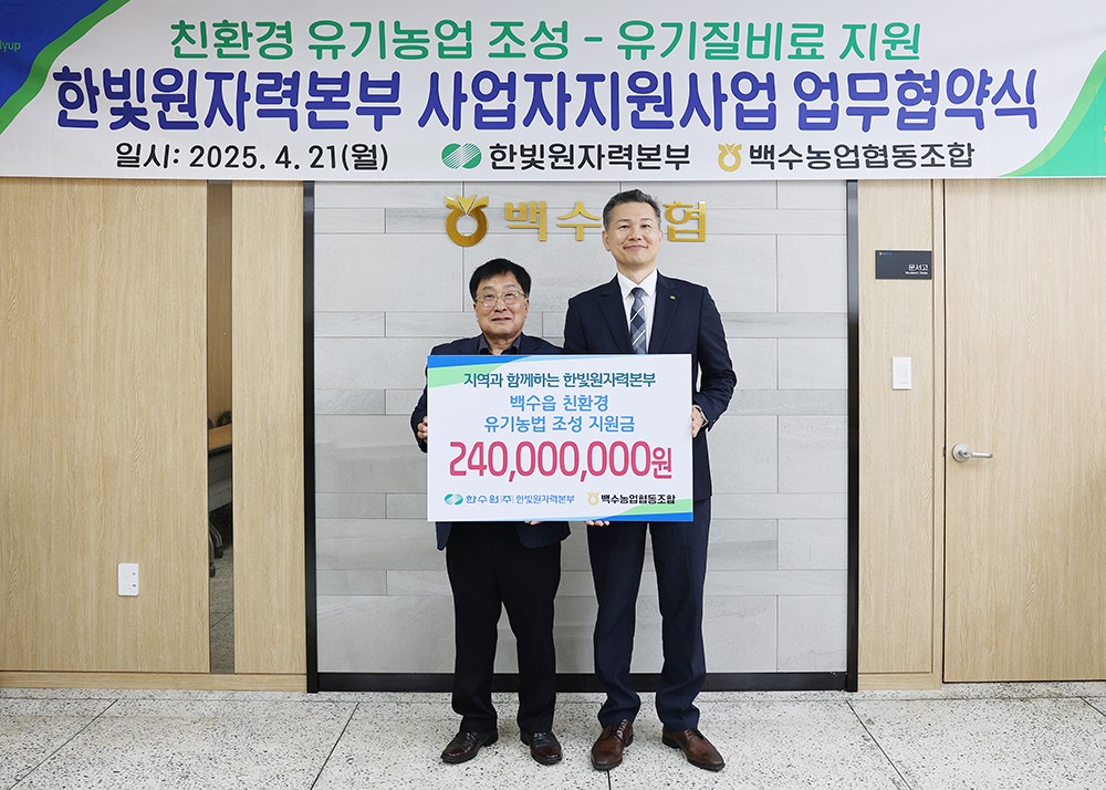 ÇѺû¿øÀڷº»ºÎ´Â 23ÀÏ ¡°Áö³ 21ÀÏ ¿µ±¤±º ¹é¼ö³ó¾÷Çùµ¿Á¶ÇÕ°ú ¡®Ä£È¯°æ À¯±â³ó¹ý Á¶¼º »ç¾÷¡¯ Áö¿ø Çù¾àÀ» ü°áÇß´Ù¡±°í ¹àÇû´Ù.