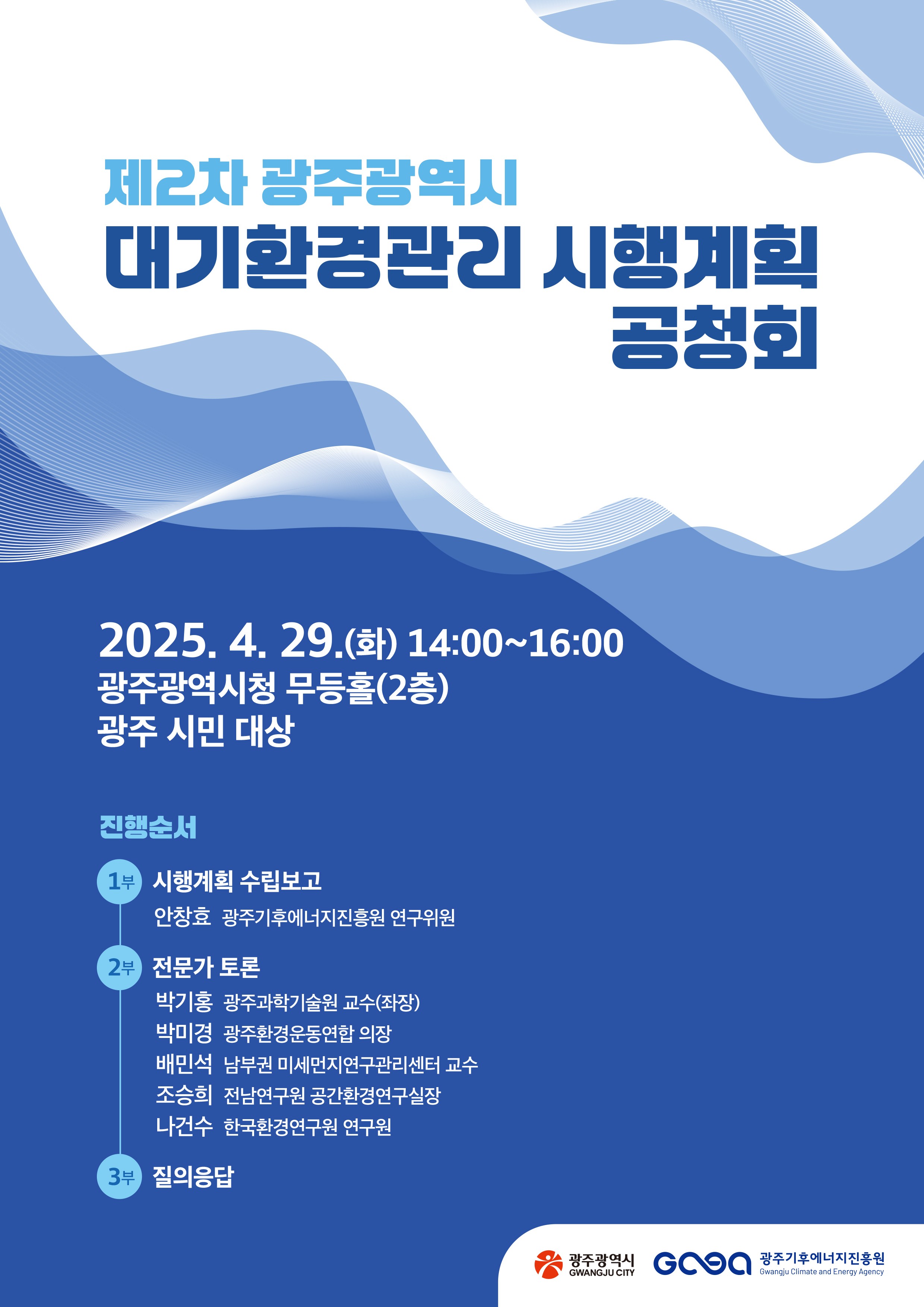 ±¤Áֽô ¿À´Â 29ÀÏ ¿ÀÈÄ 2½Ã ½Ãû 2Ãþ ¹«µîȦ¿¡¼ ¡®Á¦2Â÷(2025-2029³â) ±¤Áֽà ´ë±âȯ°æ°ü¸® ½ÃÇà°èȹ(¾È) ¼ö¸³À» À§ÇÑ °øÃ»È¸¡¯¸¦ ¿¬´Ù.