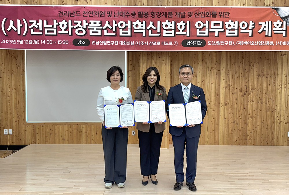 Àü³²µµ»ê¸²¿¬±¸¿øÀº 12ÀÏ (»ç)Àü³²ÈÀåǰ»ê¾÷Çõ½ÅÇùȸ, Àü³²¹ÙÀÌ¿ÀÁøÈï¿ø°ú ±â´É¼º ÈÀåǰ »ê¾÷ÀÇ Áö¼Ó °¡´ÉÇÑ ¹ßÀüÀ» À§ÇÑ 3ÀÚ ¾÷¹«Çù¾à(MOU)À» Çß´Ù.