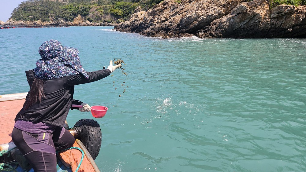 ¼ö½É 5-50mÀÇ ÀÚ¿¬»ê Á¾ÀÚ°¡ ÀÚ»ýÇϸç ÃÖÀûÀÇ ¼ºÀå ¿©°ÇÀ» °®Ãá ÇØÁ¶·ù°¡ dz¼ºÇÑ ¾ÏÃÊ ÇØ¿ª¿¡ ÇØ´ç Áö¼± ¾î¾÷ÀÎ(ÇØ³à µ¿¿ø)µé°ú ÇÔ²² ¹æ·ùÇß´Ù.