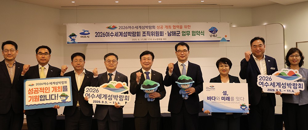 (Àç)2026¿©¼ö¼¼°è¼¶¹Ú¶÷ȸ Á¶Á÷À§¿øÈ¸´Â 18ÀÏ ¡°Àü³¯ ¼Ò³ëį ¿©¼ö ¸±¸®È¦¿¡¼ ³²Çرº°ú 2026¿©¼ö¼¼°è¼¶¹Ú¶÷ȸ ¼º°ø °³ÃÖ¿Í ¼¶¡¤Çؾç°ü±¤ Ȱ¼ºÈ¸¦ À§ÇÑ ¾÷¹«Çù¾àÀ» ü°áÇß´Ù¡±°í ¹àÇû´Ù. <»çÁø>