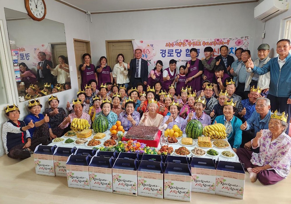 »ýÀÏÀÜÄ¡¿¡´Â ¿©¼ö½Ã³ëÀκ¹Áö°ü ÀÚ¿øºÀ»çÀÚ, Ⱦç¸é»ç¹«¼Ò °ü°èÀÚ, ¸¶À» ºÎ³àȸ µîÀÌ Âü¼®ÇßÀ¸¸ç Á¤¼º²¯ ¸¶·ÃÇÑ À½½ÄÀ¸·Î dz¼ºÇÑ »ý½Å»óÀ» Â÷·È´Ù. ½Ä»ç ÈÄ¿¡´Â Çѱ¹´ëÁßÀ½¾ÇÀÎÇùȸÀÇ Èï°Ü¿î °ø¿¬ÀÌ À̾îÁ® ¾î¸£½ÅµéÀÌ ÇÔ²² ³ë·¡ÇÏ´Â µî ÇູÇÑ ½Ã°£À» °¡Á³´Ù.