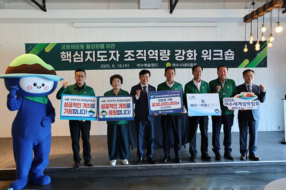 ¾àÁ¤½Ä¿¡´Â Á¤±â¸í Á¶Á÷À§¿øÀå°ú ¿©¼ö½Ã»õ¸¶À»È¸ °ü°èÀÚ°¡ Âü¼®ÇÑ °¡¿îµ¥ ¼¶¹Ú¶÷ȸÀÇ ¼º°ø °³ÃÖ¿Í »çÀü ºÕ Á¶¼ºÀ» À§ÇØ ¿©¼ö½Ã»õ¸¶À»È¸¿¡¼ 3õ¸¸¿øÀÇ ÀÔÀå±ÇÀ» »çÀü ±¸¸ÅÇϱâ·Î ¾à¼ÓÇß´Ù.