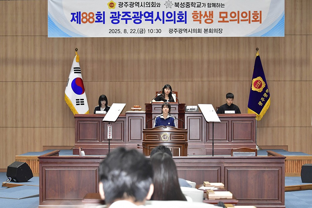 ±¤ÁÖ½ÃÀÇȸ´Â Áö³ 22ÀÏ ½ÃÀÇȸ º»È¸ÀÇÀå¿¡¼ ºÏ¼ºÁßÇб³ ÇлýµéÀ» ´ë»óÀ¸·Î ¡®Á¦88ȸ ±¤ÁÖ½ÃÀÇȸ Çлý ¸ðÀÇÀÇȸ¡¯¸¦ °³ÃÖÇß´Ù.