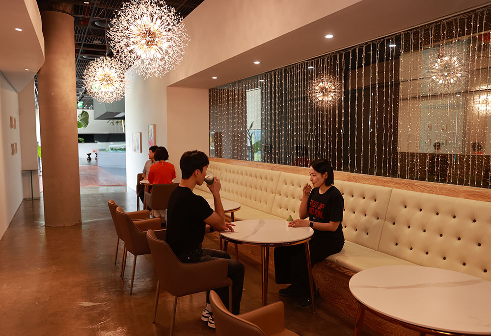 À̿밴µéÀº 2Ãþ Ä«Æä ¡®±×¸°´ÙÇ⡯¿¡¼ ÁÖ¹®ÇÑ À½·á¸¦ 3Ãþ¿¡¼µµ Áñ±æ ¼ö ÀÖ´Ù. ±×¸°´ÙÇâÀÇ ¸Þ´º´Â º¸¼º Ư»ê¹°ÀÎ ¸»Â÷¸¦ Ȱ¿ëÇÑ ¸»Â÷¾ÆÀ̽ºÅ©¸²¶ó¶¼, ¸»Â÷Èæ´ç¹öºí, ¸»Â÷ÆÏºù¼ö µîÀ» Æ÷ÇÔÇØ À½·á 46Á¾°ú µðÀúÆ® 7Á¾À¸·Î ±¸¼ºµÆ´Ù.