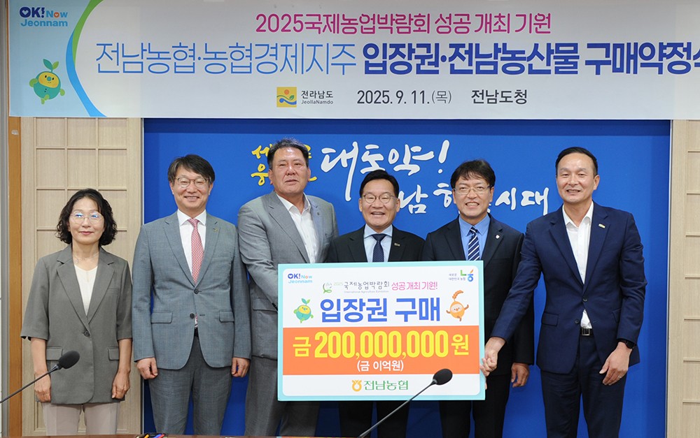 (Àç)Àü³²µµ±¹Á¦³ó¾÷¹Ú¶÷ȸ´Â 11ÀÏ Àü³²µµÃ»¿¡¼ 2025±¹Á¦³ó¾÷¹Ú¶÷ȸ ¼º°ø °³ÃÖ¸¦ À§ÇØ ³óÇùÁß¾Óȸ Àü³²º»ºÎ, ³óÇùÀºÇà Àü³²º»ºÎ, ³óÇù°æÁ¦ÁöÁÖ¿Í ÀÔÀå±Ç ±¸¸Å ¹× Àü³²³ó»ê¹° ±¸¸Å¾àÁ¤À» Çß´Ù.