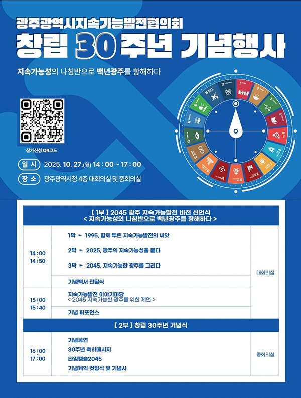 ±¤ÁÖÁö¼Ó°¡´É¹ßÀüÇùÀÇȸ´Â 1995³â ¡®Çª¸¥±¤ÁÖ21ÇùÀÇȸ¡¯·Î Ãâ¹üÇÑ ÀÌ·¡ 30³â °£ ÇàÁ¤¡¤»çȸ¡¤½Ã¹Î¡¤±â¾÷ µîÀÌ Âü¿©ÇÏ´Â Áö¿ª ´ëÇ¥ ¹Î¡¤°ü ÇùÄ¡(°Å¹ö³Í½º) Á¶Á÷À¸·Î ÀÚ¸®¸Å±èÇϸç Áö¼Ó °¡´É ¹ßÀü °¡Ä¡ ½ÇÇö¿¡ ±â¿©ÇؿԴÙ.