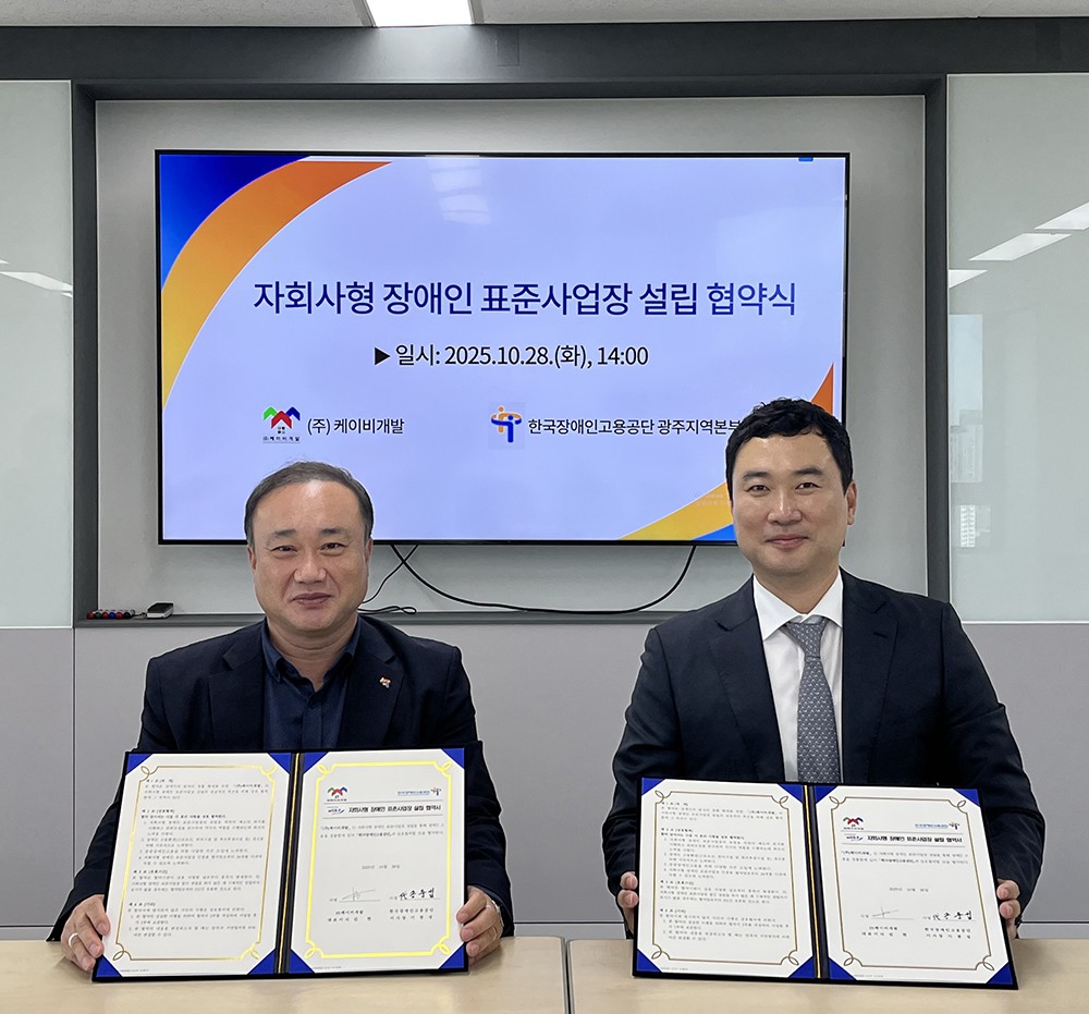 Çѱ¹Àå¾ÖÀΰí¿ë°ø´Ü ±¤ÁÖÁö¿ªº»ºÎ´Â 28ÀÏ ¡°°ø´Ü ±¤ÁÖÁö¿ªº»ºÎ¿¡¼ ¢ßÄÉÀ̺ñ°³¹ß°ú Àå¾ÖÀÎ ÀÏÀÚ¸® âÃâÀ» À§ÇØ ¡®ÀÚȸ»çÇü Àå¾ÖÀÎÇ¥ÁØ»ç¾÷À塯 ¼³¸³À» À§ÇÑ Çù¾àÀ» ü°áÇß´Ù¡±°í ¹àÇû´Ù.