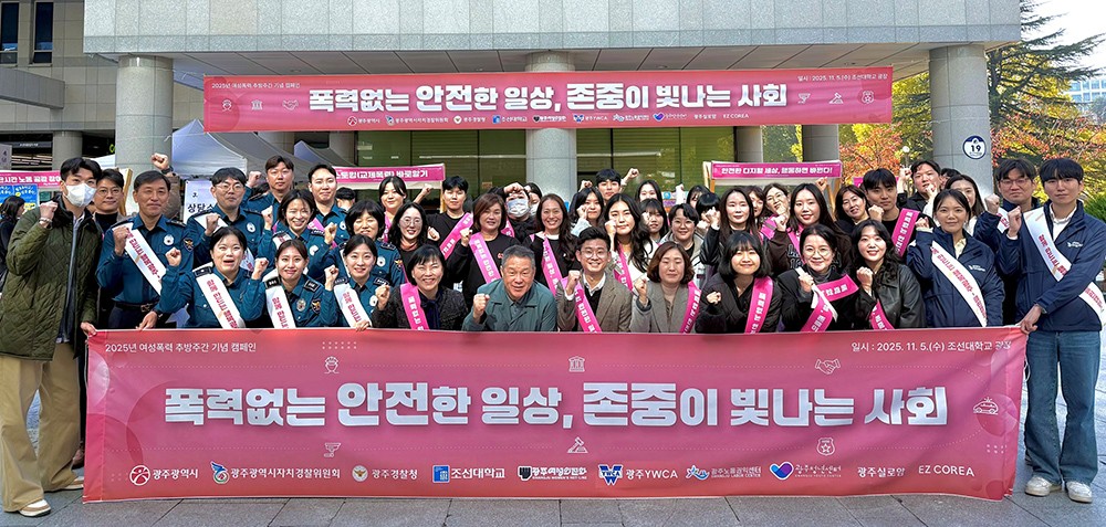 ±¤Áֽô ¡®¿©¼ºÆø·Â Ãß¹æÁÖ°£¡¯(11¿ù25ÀÏ-12¿ù1ÀÏ)À» ¸Â¾Æ 5ÀÏ Á¶¼±´ëÇб³ Áß¾Óµµ¼°ü ±¤Àå¿¡¼ ¡®Æø·Â ¾ø´Â ¾ÈÀüÇÑ ÀÏ»ó, Á¸ÁßÀÌ ºû³ª´Â »çȸ¡¯¸¦ ÁÖÁ¦·Î ÇÕµ¿ Ä·ÆäÀÎÀ» ½Ç½ÃÇß´Ù.