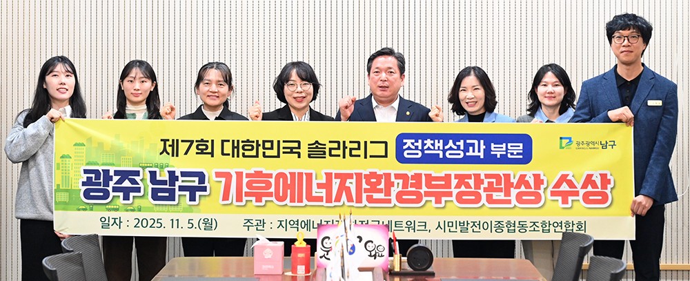 ´ëÇѹα¹ ¼Ö¶ó¸®±×´Â Àü±¹ Áö¹æÀÚÄ¡´Üü¡¤°ø°ø±â°ü¡¤¹Î°£±â¾÷ÀÇ ±âÈÄÀ§±â ´ëÀÀ¡¤½ÅÀç»ý ¿¡³ÊÁö º¸±Þ ¼º°ú¸¦ Æò°¡ÇÏ´Â ¿¡³ÊÁö °æÁø´ëȸ·Î, ³²±¸´Â ÁÖ¹ÎÂü¿© ¿¡³ÊÁö Á¤Ã¥°ú ź¼ÒÁ߸³ Á¤Ã¥ µî ½ÅÀç»ý ¿¡³ÊÁö º¸±Þ »ç¾÷ ¼º°ú¸¦ ¹ÙÅÁÀ¸·Î ±âÈÄ¿¡³ÊÁöȯ°æºÎ Àå°ü»óÀ» ¼ö»óÇß´Ù.
