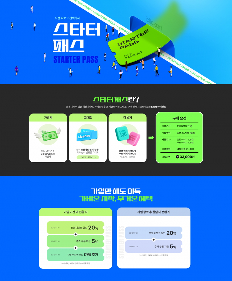 ¡®½ºÅ¸ÅÍÆÐ½º¡¯´Â 3¸¸3õ¿øÀ¸·Î ¾ÆÀÌŬ¸¯¾ÆÆ®ÀÇ ½ºÅÄ´Ùµå Àμâ(³³Ç°) ¶óÀ̼±½º ¹üÀ§¸¦ µ¿ÀÏÇÏ°Ô ÀÌ¿ëÇÒ ¼ö ÀÖ´Ù. ±âÁ¸ ½ºÅÄ´Ùµå Àμ⠶óÀ̼±½º¿¡¼ °¡°Ý°ú ´Ù¿î·Îµå ¼ö·®¸¸ Á¶Á¤µÈ ÇüÅ·Î, À¯·á À̹ÌÁö 100ÄÆ°ú ¹«·á À̹ÌÁö 100ÄÆÀ» Á¦°øÇÑ´Ù.