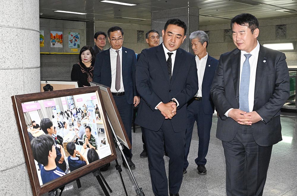 °³¸·½Ä¿¡´Â ÀÌÁ¤¼± ±¤Áֽñ³À°°¨ÀÌ Âü¼®ÇØ ½Ã¹Îµé°ú ÇÔ²² Àü½ÃÀåÀ» µÑ·¯ºÃ´Ù. ÀÌ ±³À°°¨Àº ±èÁø¼ö ȸÀåÀÇ ¾È³»¸¦ ¹ÞÀ¸¸ç ±³½Ç ¾ÈÆÆ¿¡¼ Ȱ¹ßÈ÷ Ȱµ¿ÇÏ´Â ÇлýµéÀÇ ¸ð½ÀÀ» ´ãÀº ÀÛǰµéÀ» ¼¼½ÉÈ÷ »ìÆñ´Ù.