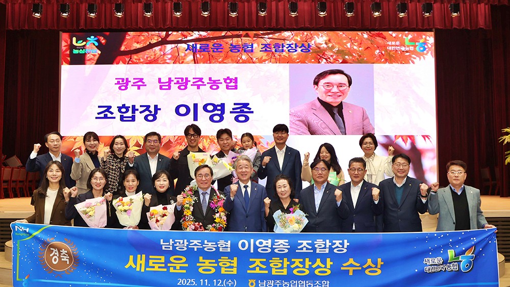 ÀÌ¿µÁ¾ Á¶ÇÕÀåÀº ¡°À̹ø ¼ö»óÀº ³²±¤ÁÖ³óÇù 3õ¿© Á¶ÇÕ¿ø ¸ðµç ºÐÀÌ ÇÔ²² ÀÌ·é °ªÁø ¼º°ú¡±¶ó¸ç ¡°±×µ¿¾È ¾Æ³¦¾øÀÌ º¸³»ÁֽŠ½Å·Ú¿Í ¼º¿ø¿¡ ±íÀÌ °¨»çµå¸®¸ç ³²±¤ÁÖ³óÇùÀÇ Áö¼ÓÀû ¹ßÀü°ú Á¶ÇÕ¿ø º¹Áö Çâ»óÀ» À§ÇØ ´õ¿í Ã¥ÀÓ°¨À» °®°í µçµçÇÏ°Ô ¿ªÇÒÀ» ´ÙÇϰڴ١±°í ¼Ò°¨À» ¹àÇû´Ù.