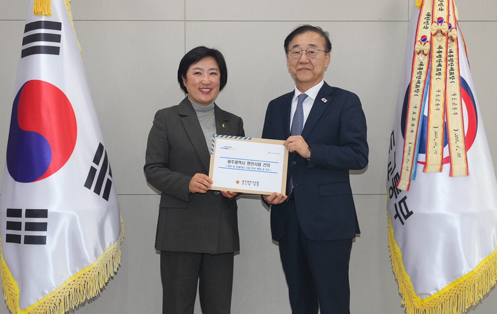 ±¤ÁÖ½ÃÀÇȸ ½Å¼öÁ¤ ÀÇÀåÀº 24ÀÏ ±èÀ±´ö ±¹Åä±³ÅëºÎ Àå°üÀ» ¸¸³ª ±¤ÁÖ ÇÙ½É Çö¾È »ç¾÷ ÇØ°áÀ» À§ÇÑ Áß¾ÓÁ¤ºÎ Â÷¿øÀÇ Àû±ØÀûÀÎ °ü½É°ú Áö¿øÀ» ¿äûÇß´Ù. <»çÁø>