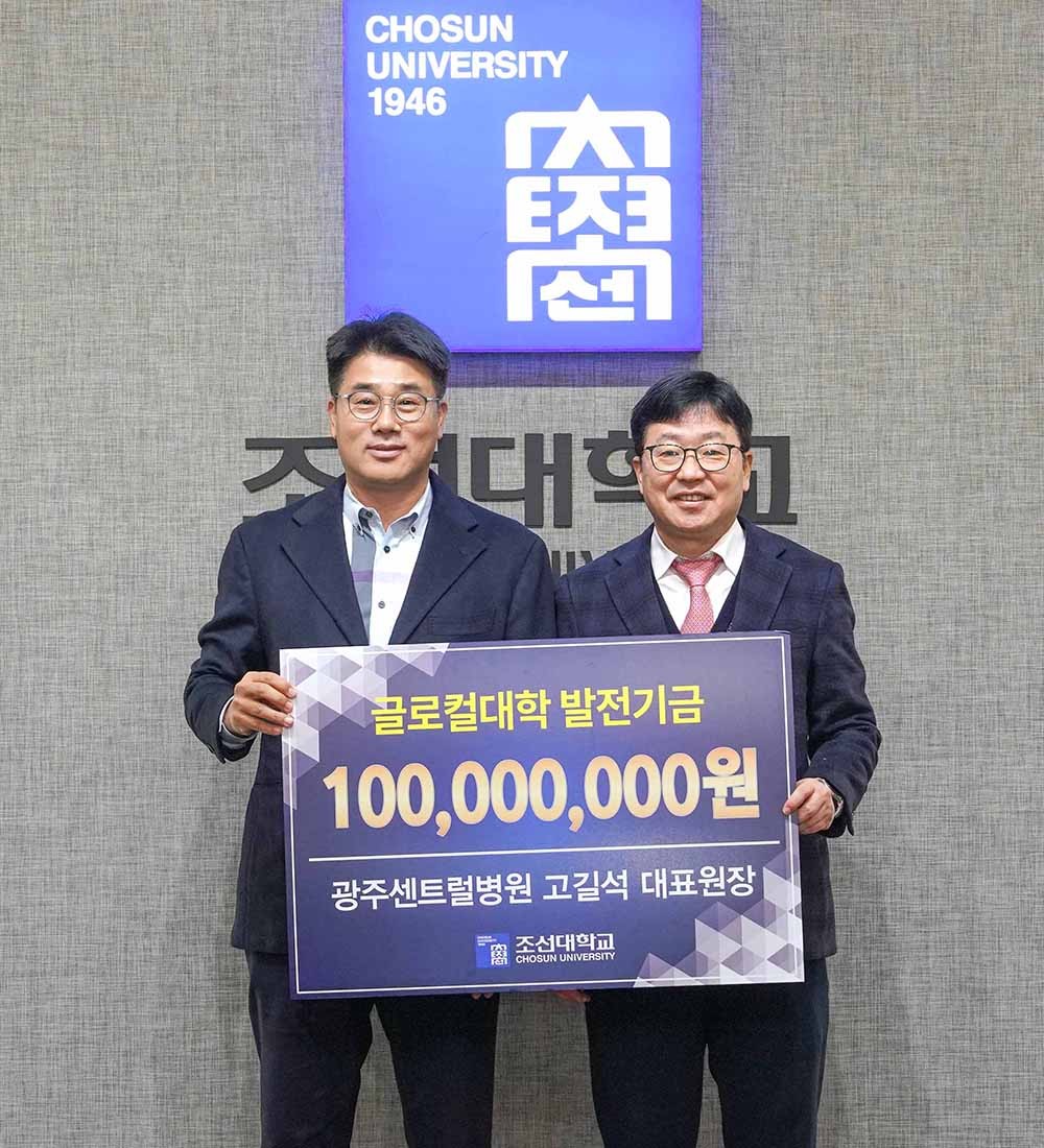 Á¶¼±´ëÇб³´Â 2ÀÏ ¡°Àü³¯ °í±æ¼® ±¤ÁÖ¼¾Æ®·²º´¿ø ´ëÇ¥¿øÀåÀÌ ±Û·ÎÄôëÇÐ ¹ßÀü°ú ÇлýµéÀÇ µçµçÇÑ ¾ÆÄ§ Áö¿øÀ» À§ÇØ ½á´Þ¶ó¸ç ¹ßÀü±â±Ý 1¾ï¿øÀ» ±âºÎÇß´Ù¡±°í ¹àÇû´Ù.