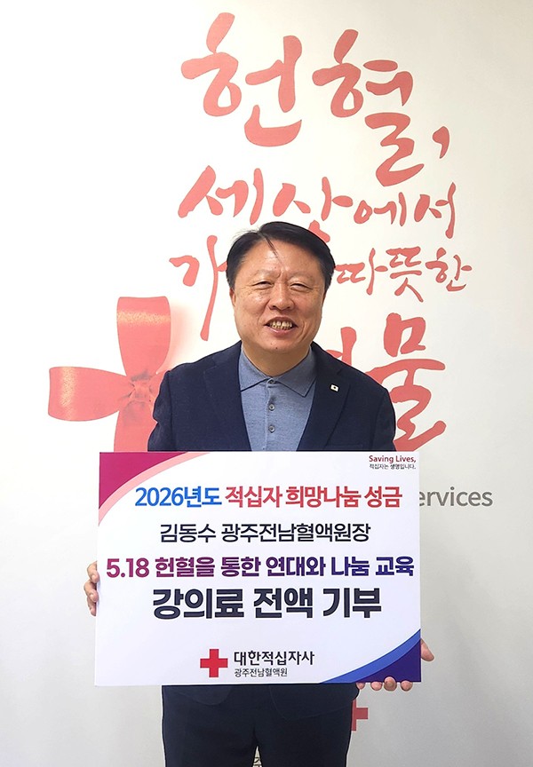 ±èµ¿¼ö(»çÁø) ´ëÇÑÀû½ÊÀÚ»ç ±¤ÁÖÀü³²Ç÷¾×¿øÀåÀº 8ÀÏ ¿Ã ÇÑ ÇØ ¡®5¡¤18 ½Ã¹ÎÇåÇ÷¿¡ ³ªÅ¸³ ¿¬´ë¿Í ³ª´®¡¯ Ư°À» ÁøÇàÇÏ¸ç ¹ÞÀº °ÀÇ·á 100¸¸¿øÀ» Àû½ÊÀÚ Èñ¸Á³ª´® ¼º±ÝÀ¸·Î ±âºÎÇß´Ù.