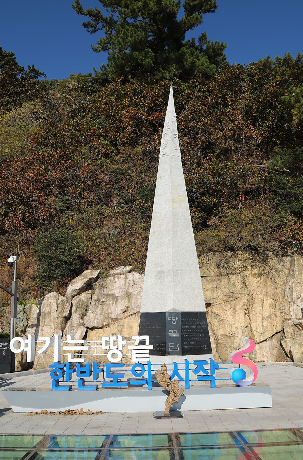 ¶¥³¡Àº ÇѹݵµÀÇ ³¡ÀÌ¸é¼ ¹Ù´Ù¿¡¼ Çѹݵµ·Î ¿Ã¶ó¼´Â ½ÃÀÛÁ¡ÀÌ´Ù. ¶¥³¡Å¾ÀÌ ÀÖ´Â À̰÷Àº ¹Ù´Ù¸¦ ÇâÇØ ¹î¸Ó¸®Ã³·³ Æ¢¾î³ª¿Í ÇѹݵµÀÇ ³¡À» ÀÌ·ç´Âµ¥, ¿©±â¸¦ ÇØ³²°¢À̶ó ÇÑ´Ù. ÇØ³²°¢Àº ¼ÇØ¿Í ³²Çظ¦ °¡¸£´Â ºÐ±âÁ¡ÀÌ´Ù. ³²ÆÄ¶û±æÀÌ ³¡³ª°í, ¼Çضû±æÀÌ ½ÃÀ۵ȴÙ.