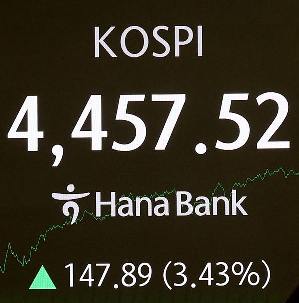 Çѱ¹°Å·¡¼Ò¿¡ µû¸£¸é ÄÚ½ºÇÇ´Â À̳¯ Àü °Å·¡ÀÏ ´ëºñ 3.43%(147.89) ¿À¸¥ 4,457.52·Î ¸¶°¨ÇØ »ç»ó óÀ½À¸·Î 4,450¼±À» µ¹ÆÄÇß´Ù. ÀÌ´Â Áö³ 2ÀÏ »õÇØ ù °Å·¡ÀÏ¿¡ 4,300¼±À» µ¹ÆÄ(Á¾°¡ 4,309.63)ÇÑ Áö ´Ü ÇϷ縸¿¡ ´Ù½Ã ½Å°í°¡¸¦ °¥¾ÆÄ¡¿î °ÍÀÌ´Ù.