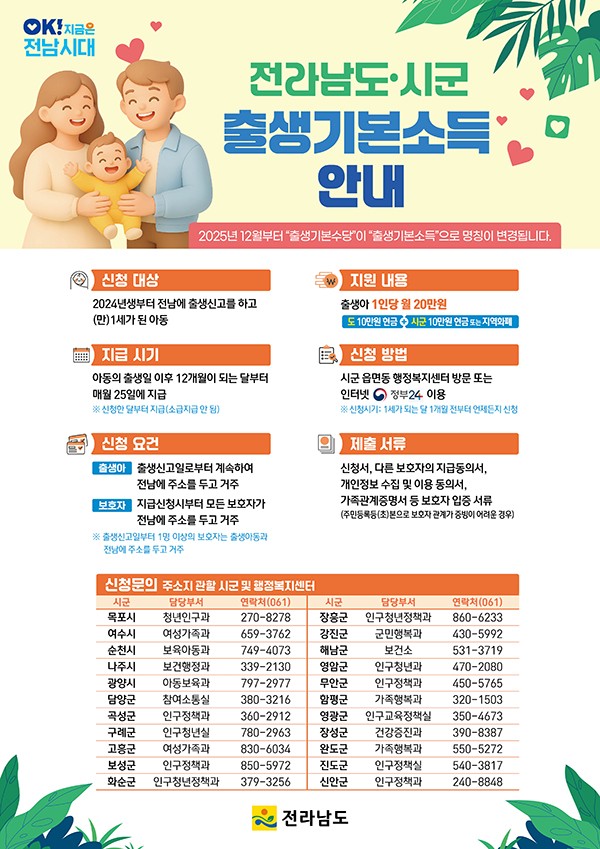 Àü³²µµ´Â 6ÀÏ ¡°Àü³²¿¡¼ ÅÂ¾î³ 2025³â»ý Ãâ»ý¾Æ¿¡°Ô ¸Å´Þ 20¸¸¿ø¾¿ Àü³²µµ ½Ã¡¤±º Ãâ»ý±âº»¼ÒµæÀ» Áö±ÞÇÑ´Ù¡±°í ¹àÇû´Ù.