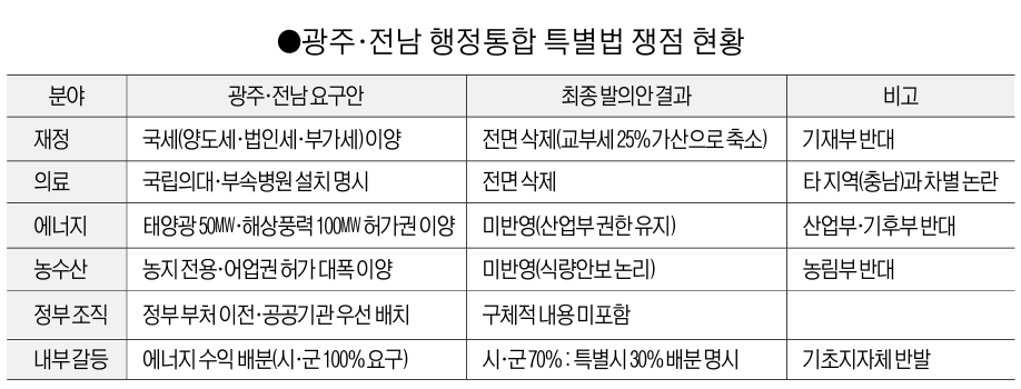 ±¤ÁÖ¡¤Àü³² ÇàÁ¤ÅëÇÕÀÇ ¼º°øÀ» ´ãº¸ÇÒ ÇÙ½É ¿£ÁøÀº ¡®ÀçÁ¤¡¯ÀÌ´Ù. ±×·¯³ª ÇöÀç °ø°³µÈ Ưº°¹ý¾È°ú Á¤ºÎÀÇ Áö¿ø ¹æÄ§Àº ÀÌ·¯ÇÑ ±â´ë¿¡ Å©°Ô ¹ÌÄ¡Áö ¸øÇϰí ÀÖ´Ù.