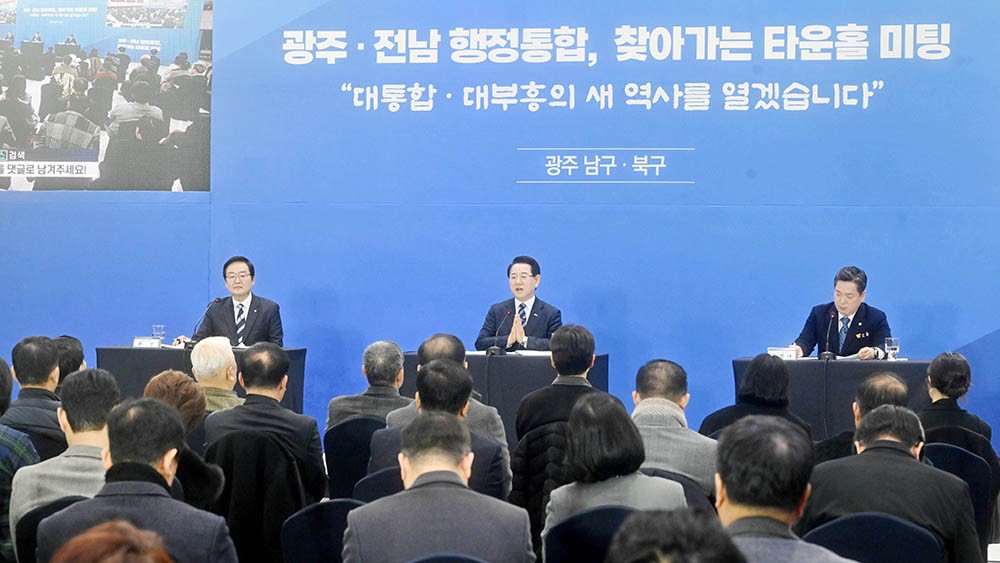 ±¤ÁÖ¡¤Àü³²À» ¼øÈ¸Çϸç ÁøÇàµÇ´Â À̹ø Ÿ¿îȦ¹ÌÆÃÀº ÅëÇÕ ³íÀǸ¦ Ã¥»ó À§ ³íÀïÀÌ ¾Æ´Ñ ½Ã¹ÎÀÇ ÀÏ»ó ¼Ó ÀÇÁ¦·Î ²ø¾î³»°í ´ëÅëÇÕ°ú ´ëºÎÈïÀ» ÇâÇÑ »õ·Î¿î Áö¿ª ºñÀüÀ» ½Ã¹Îµé°ú °øÀ¯ÇÏ´Â °ø·ÐÀÇ ÀåÀ¸·Î ¸¶·ÃµÆ´Ù.