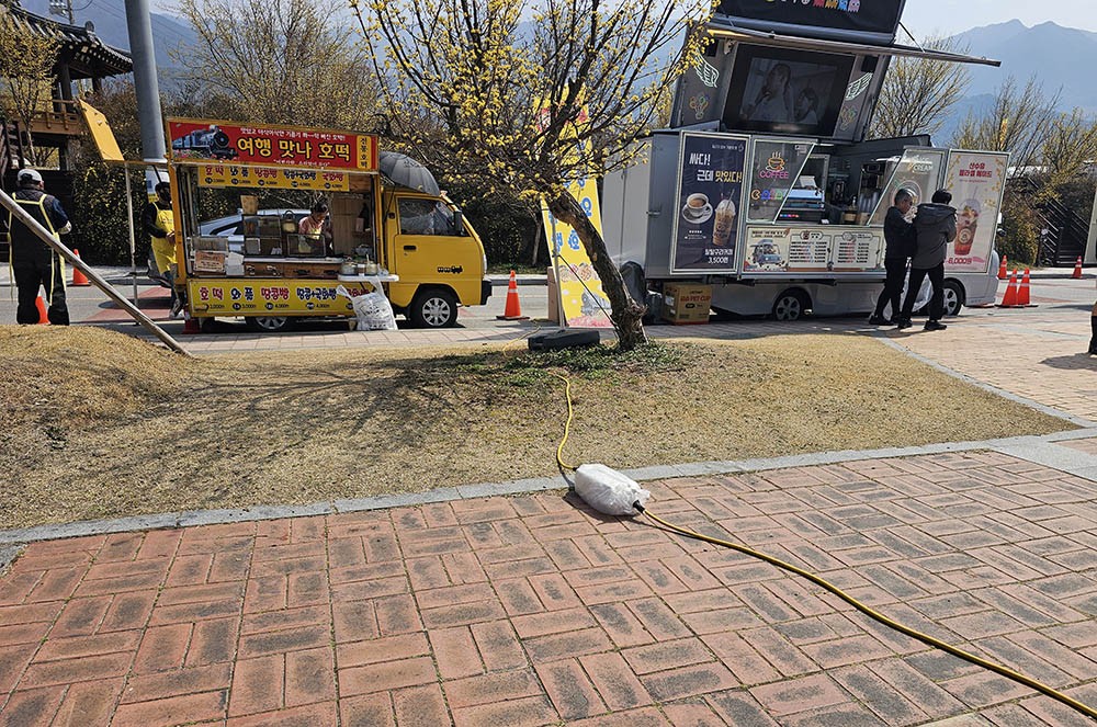 ÀÌ °°Àº ºÎ½ÇÇÑ ÀÎÇÁ¶ó ¹è°æ¿¡´Â ÃàÁ¦Àå °÷°÷ÀÇ Àü±â ½Ã¼³ ¹æÄ¡°¡ ²ÅÈ÷°í ÀÖ´Ù. ÃàÁ¦Àå ºÎ½º Àα٠¹Ù´Ú¿¡´Â ÀÌ¹Ì °Ë°Ô Ÿ¹ö¸° Àü¼±ÀÌ Èä¹°½º·´°Ô ¹æÄ¡µÅ ÀÖ¾ú°í, ½À±â°¡ ¸¹Àº ÇÏõº¯ À§·Î´Â ¾Æ¹«·± Àý¿¬ Á¶Ä¡ ¾øÀÌ Àü±â ¸®µå¼±ÀÌ ³Îºê·¯Á® ÀÖ¾ú´Ù.