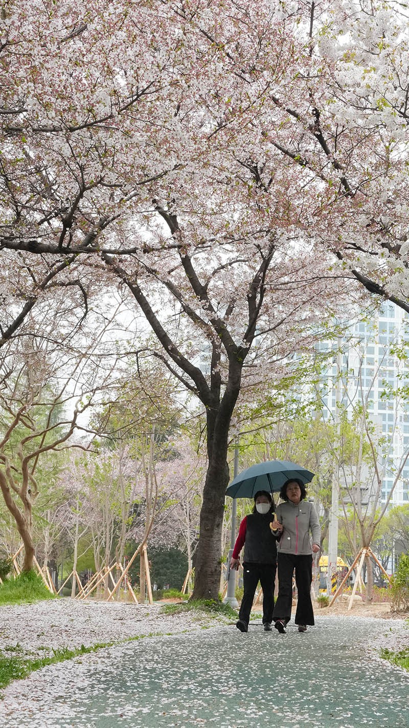 Áö³­ ÁÖ¸»¿¡ ÀÌ¾î ¶Ç ´Ù½Ã ºñ°¡ ³»¸®¸é¼­ ¸¸°³ÇÑ º¢²ÉÀÌ ¹Ù´ÚÀ» µÚµ¤¾ú´Ù. 6ÀÏ ±¤ÁÖ ¼­±¸ ¿îõÀú¼öÁö º¢²É±æÀ» ãÀº ½Ã¹ÎµéÀÌ ¿ì»êÀ» ¾´ ä ºñ¹Ù¶÷¿¡ ¶³¾îÁø ¡®º¢²É ¿£µù¡¯À» º¸¸ç ¾Æ½¬¿öÇϰí ÀÖ´Ù./Á¶¿µ±Ç ±âÀÚ